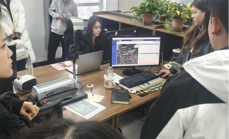 在实习过程中,学生们首先参观了公司的数据处理中心。企业技术人员详细介绍了ArcGIS软件在土地规划项目中的核心作用,现场演示了如何利用该软件进行空间数据管理、土地利用现状分析与规划图件制作。学生们认真观摩了从数据采集到成果输出的完整流程,对ArcGIS在土地规划中的实际价值有了更加直观的认识。