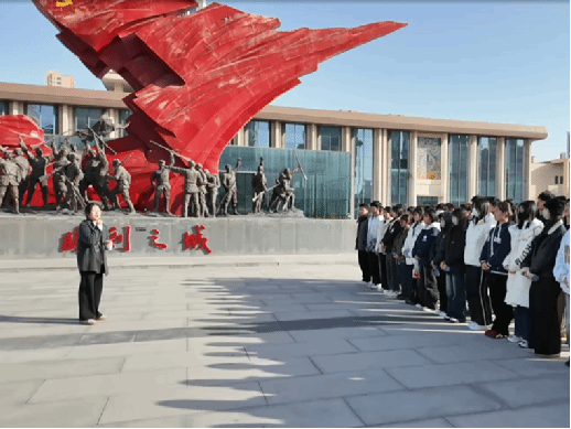 在解放广场上,师生驻足于“胜利之城”雕塑前。网络空间安全学院思政教研室主任范凯轩通过雕塑中不同着装战士的形象,讲述了在1947年解放石家庄战役中解放军协同作战的光辉历史,生动还原了六天六夜鏖战的血色黎明。朱德总司令的“石门封锁太行山,勇士掀开指顾间”,不仅是对胜利的礼赞,更是对后人的激励。昔日的“石门”需用炮火与热血去“掀开”,而今天的“数字之门”则需用智慧与技术去守护。