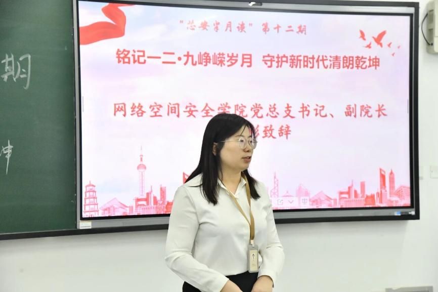 网络空间安全学院思政教研室主任范凯轩通过讲述与历史影像,将师生带回了1935年华北危急、山河破碎的历史。一二·九运动不仅是青年学子对民族存亡的挺身而出,更是中国青年用热血书写对国家命运赤诚担当的壮丽篇章。一二·九精神跨越九十年依然在新时代的网安学子心间熠熠生辉,爱国从救亡图存的奔走呼号,转化为捍卫网络空间安全、筑牢数字疆域防线的专业使命。